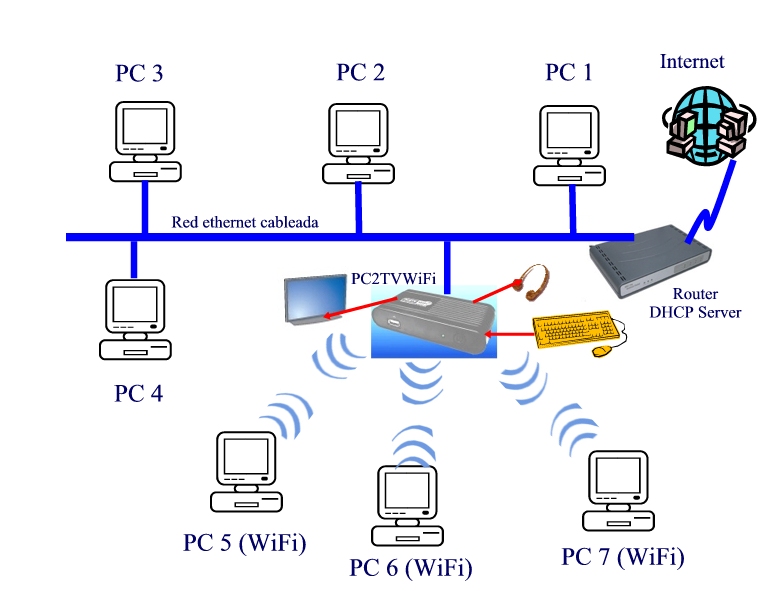 El dispositivo realmente opera como un extensor de varias funciones del PC al cual se conecta pues el mismo extiende el uso en la red de: